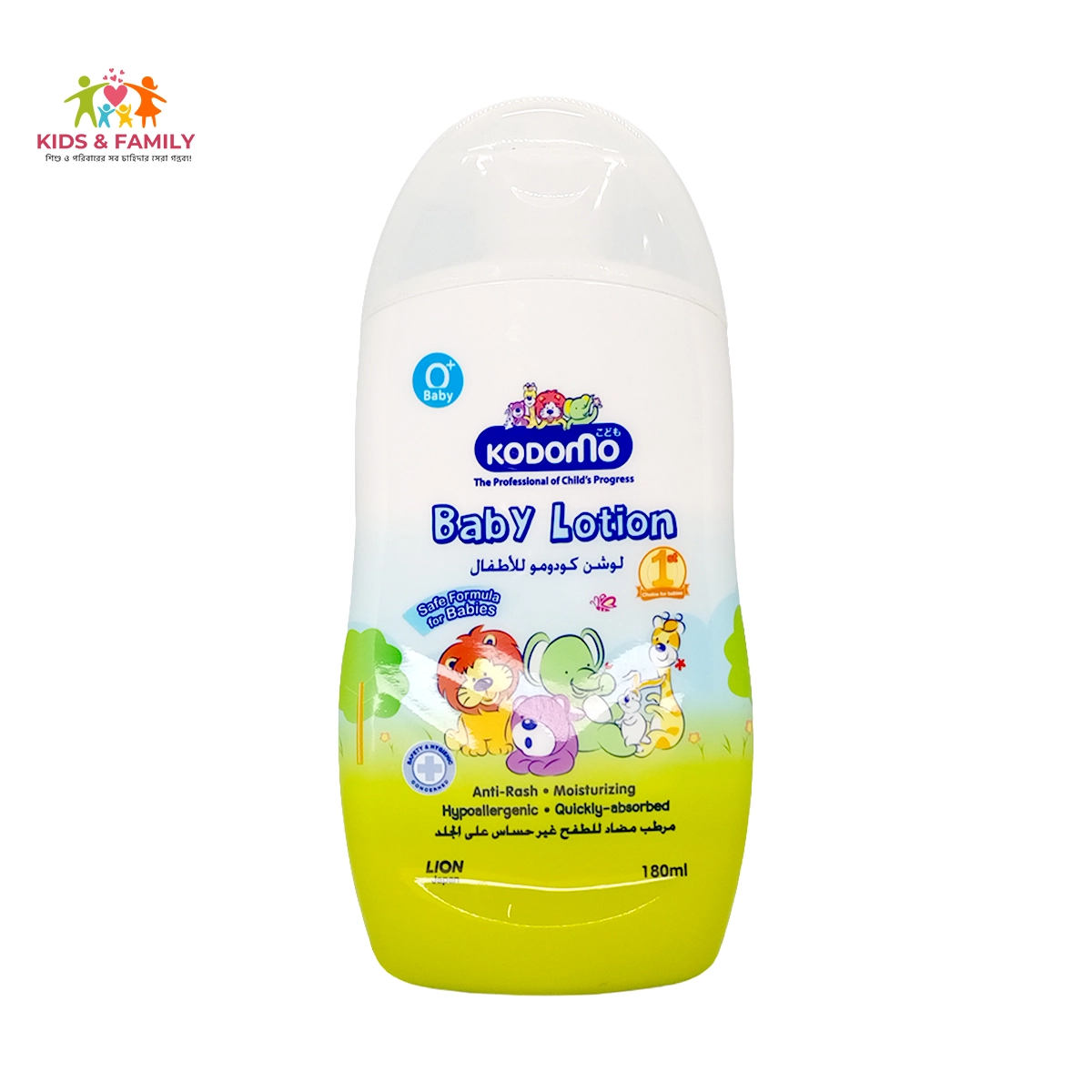 Kodomo Baby Lotion (180ml) শিশুর ত্বক নরম, মসৃণ ও আর্দ্র রাখতে সাহায্য করে। এর হাইপোঅ্যালার্জেনিক ও দ্রুত শোষণযোগ্য ফর্মুলা ত্বককে শুষ্কতা ও র্যাশ থেকে সুরক্ষা দেয়।