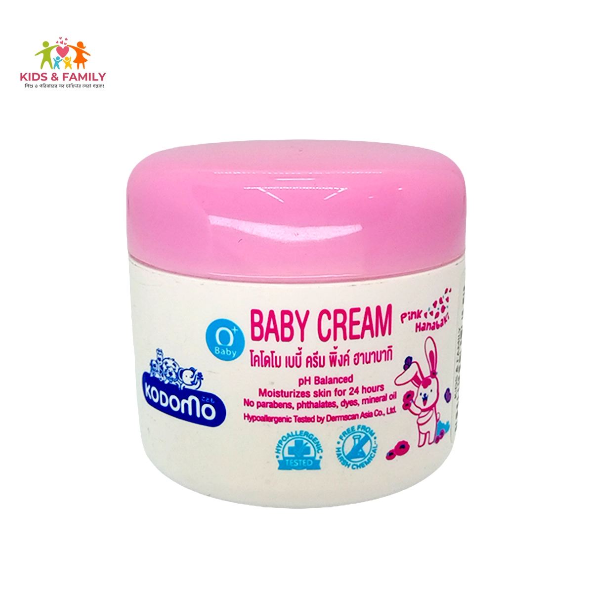 Kodomo Baby Cream (Pink Hanabaki) শিশুর ত্বককে ২৪ ঘণ্টা পর্যন্ত ময়েশ্চারাইজ রাখে। এর pH Balanced ও Hypoallergenic ফর্মুলা ত্বকে জ্বালা বা র্যাশের ঝুঁকি কমায়।