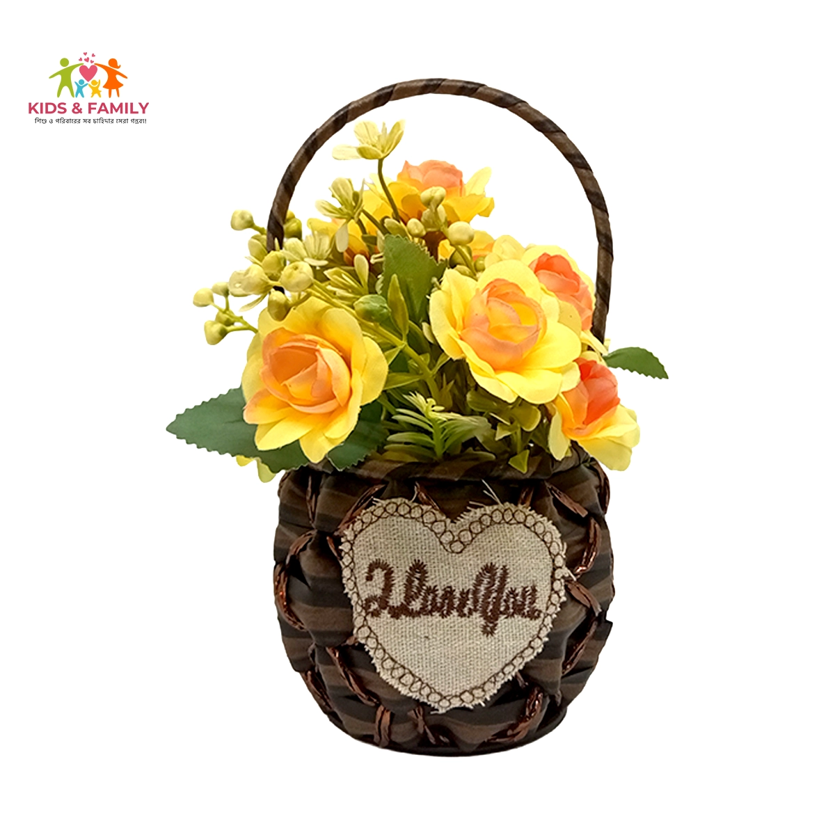 Artificial Yellow & Orange Rose Flower Basket – Decorative Gift Home Décor