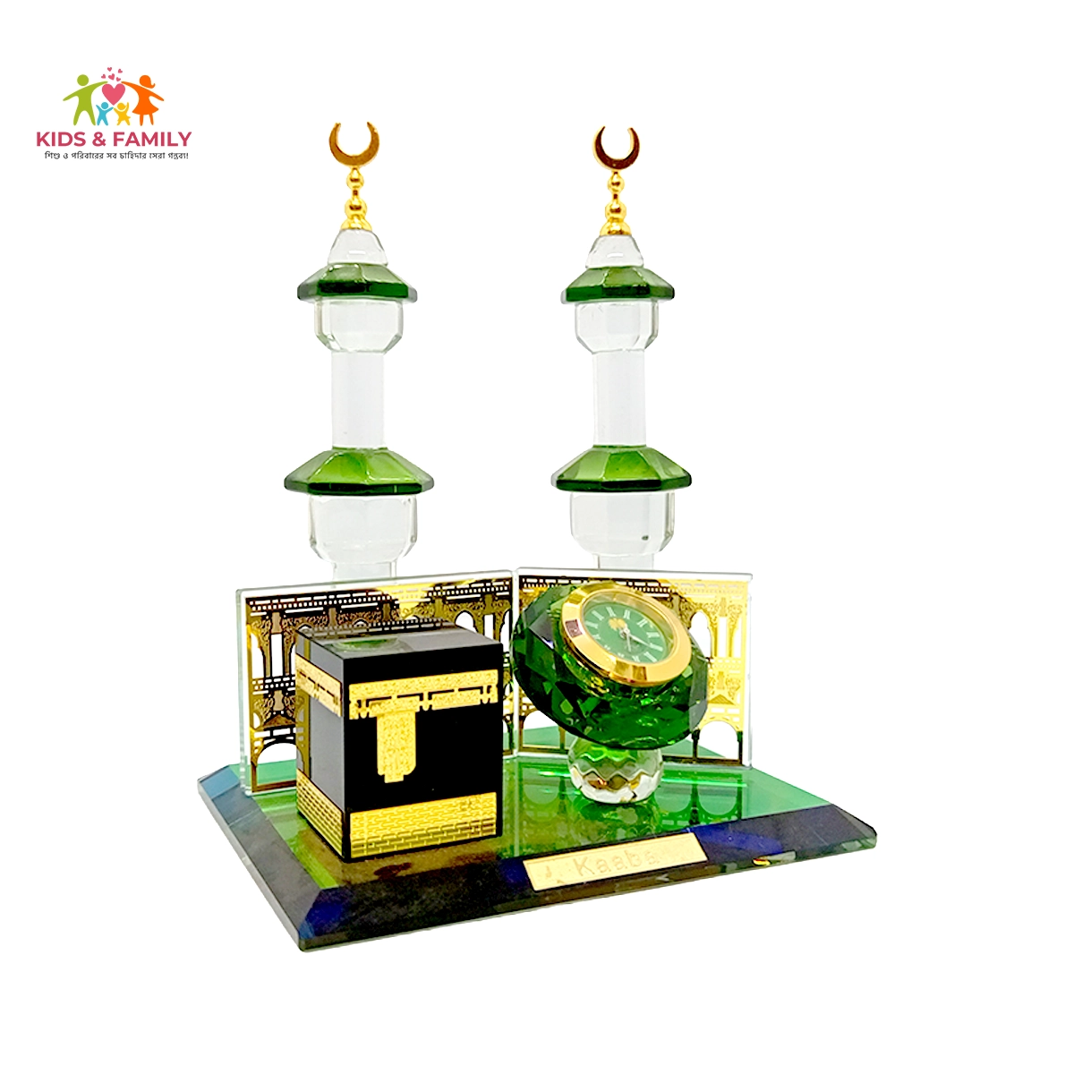 এই সুন্দর Islamic Kaaba Showpiece–এ রয়েছে কাবা শরীফের ডিজাইন, দুই পাশে মিনার স্টাইল এবং একটি বিল্ট-ইন ডেকোরেটিভ ঘড়ি। এটি আপনার ড্রইং রুম, নামাজ রুম, অফিস ডেস্ক বা শোকেসে এনে দেবে একদম মার্জিত ও ইসলামিক পরিবেশ।